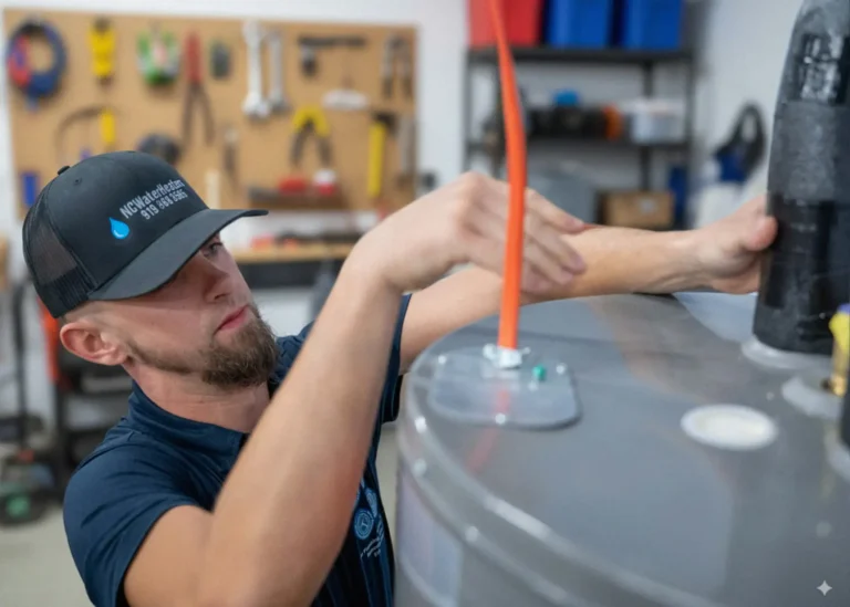 Spoke wuth Dave, Great Personality, he was able to schedule Jordan Hicks and Brandon Johnson to service Us same day to Replace my 21 year old water heater. BOTH Jordan and Brandon were Happy Easy Going and very Polite the entire time. Both worked Professionally, Efficiently, ( it was cold outside, they're in the garage ), Worked with Great safety in mind and Very Detailed Oriented. Any trash went directly into their coat pockets, not on the floor, Extremely Clean Work Area, no matter what they were working with, ( Gas Water Heater, gas lines, fittings not laying around ), Both men were Very Knowledgeable. The work and insulation of my New Water Heater Looks Fantastic. Much better Work, then what the Original builders Skill set was. Jordan is a Carpenter by Nature but an Apprentice to the Plumbing World. He's going to Journey Far in His Fields. Brandon was the Plumber, He answered Every question I could think of while watching them work. He suggested youtube for a better inside look of the heater itself so i could see the calcium buildup over the years and why yearly flushouts save you money. Thank You Both, Jordan and Brandon for your Professionalism while Replacing our Gas Water Heater. I Highly recommend you request the Professional Employees from NCWaterHeaters.com to complete any of your Electrical, Plumbing, Remodeling, Backflow Issues no matter if your Commercial or Residential. Call them Today ! You will Not be Disappointed !